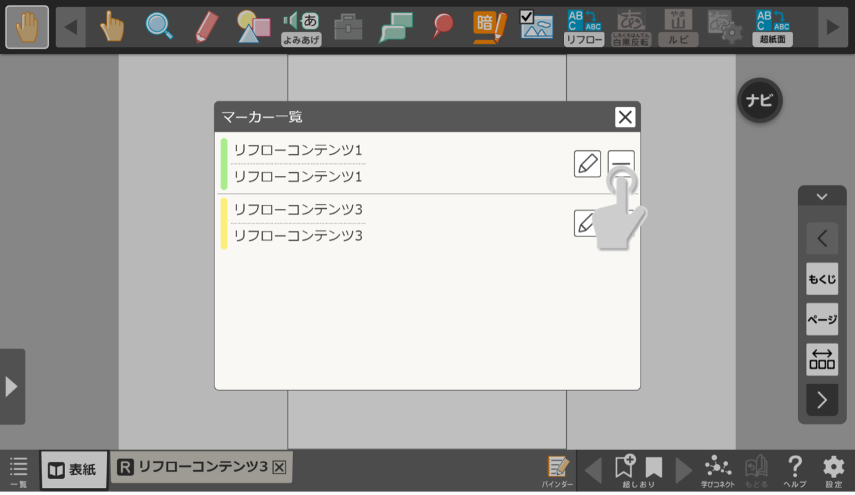 超教科書ビューア ビューア機能 ページ操作バーとタブ